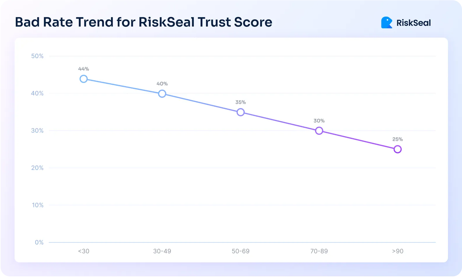 This trend confirms that RiskSeal effectively assesses credit risk, helping businesses identify high-risk and low-risk customers