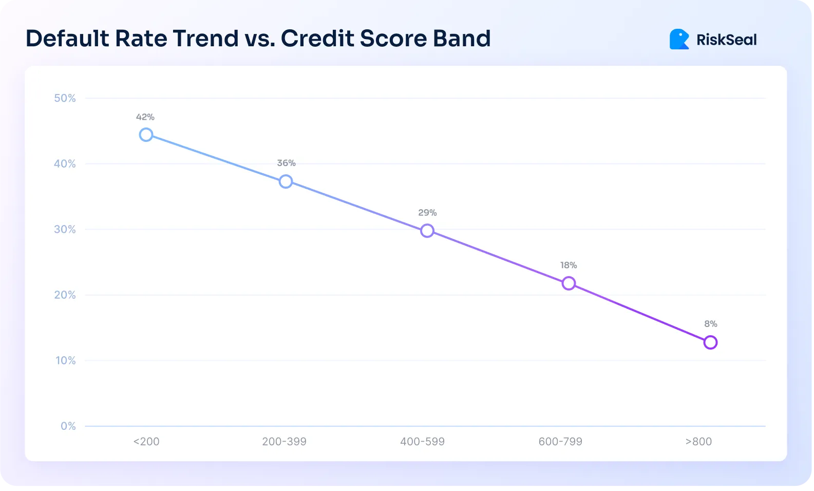 Default rates decrease consistently as score bands improve - from high-risk segments to low-risk segments - demonstrating stronger predictive power.